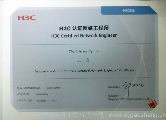 15、H3C認(rèn)證網(wǎng)絡(luò)工程師1人